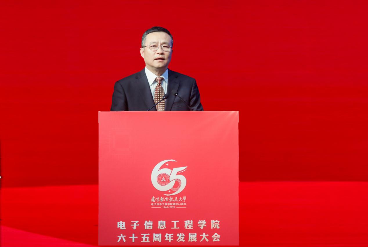 校长助理、tyc234cc 太阳成集团常务副院长潘时龙作学院发展报告。一路走来,几代南航电子信息人始终秉承家国情怀,砥砺奋进、开拓创新,逐步成长为我国电子信息领域一支重要的战略科技力量。学院始终坚持党建引领、特色发展、人才强院、创新发展、深度融合、立德树人、开放办学,在思政育人、师资队伍、科技创新等方面取得了一系列辉煌成就。未来,学院党委将锚定学校2035年发展目标,以实施“十年行动计划”为牵引,为科技强国建设贡献更多南航智慧和力量。